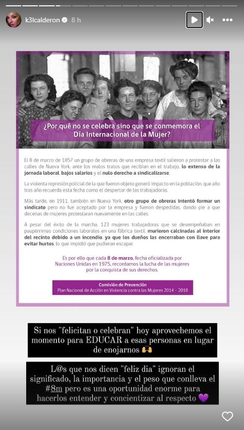 Kel Calderón compartió con sus seguidores una reflexión sobre el significado de este día para las mujeres,