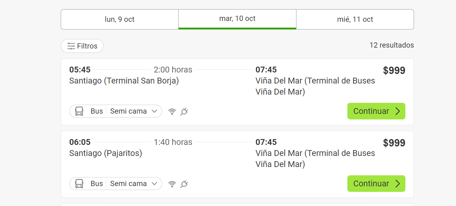 Pasajes desde la capital hacia San Antonio o Viña del Mar se pueden encontrar desde los $999. La compañía también ofrece el servicio Santiago-Coquimbo a bajo costo.