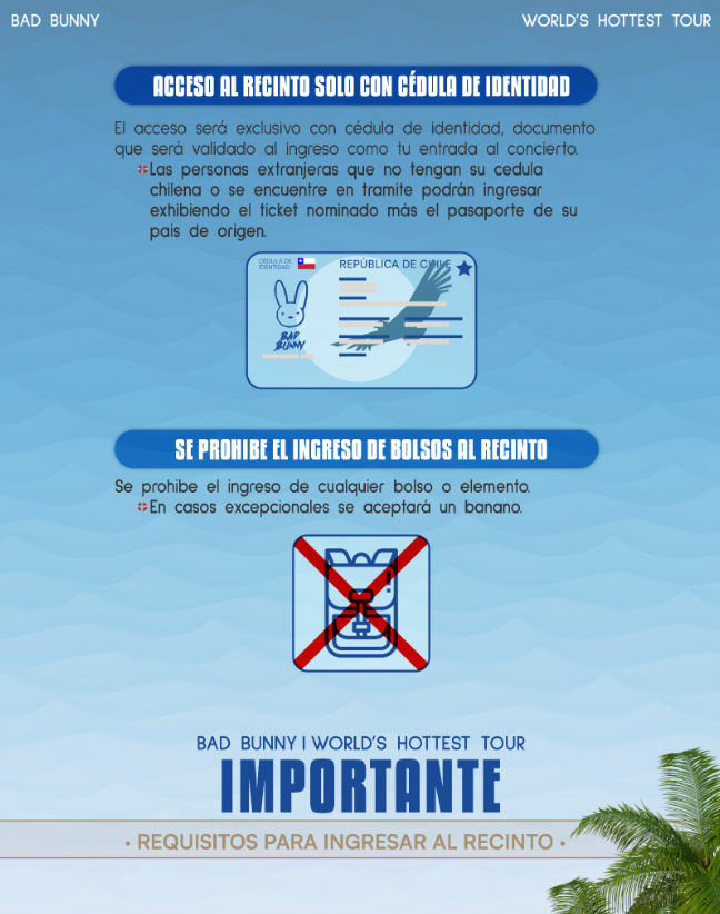 Accesos, horarios y bolsos prohibidos: Todo lo que necesitas saber para ir a los conciertos de Bad Bunny en Chile