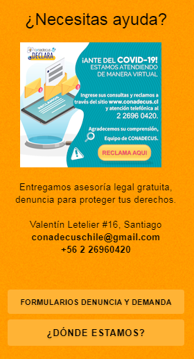 Lee también: Elecciones del 21 de noviembre: ¿Se puede ir a votar con la cédula de identidad vencida?Para realizar una denuncia en Conadecus: