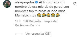 En los comentarios al registro mencionado, Gárgolas no se resistió y lanzó su ofensiva que, por lo demás, desató la furia de más de 200 usuarios.