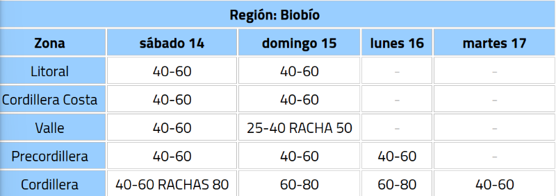 En esa línea, explicaron que el fenómeno sucederá debido al “ingreso de un sistema frontal con jet de bajo nivel”, que afectará desde la región Metropolitana hasta el Biobío.