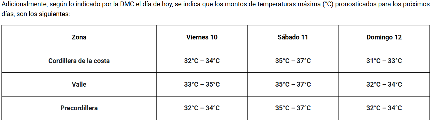 Cabe recordar que se pronosticaron cerca de 37° para Santiago, mientras que en otras zonas del país se espera que los termómetros lleguen a los 39°.