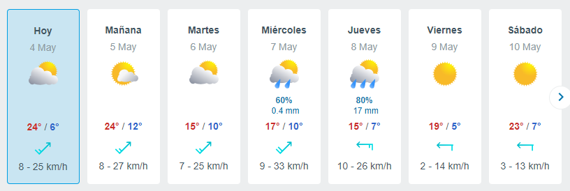 El martes 6 de mayo el día estará nublado con una temperatura que no superará los 15°, mientras que el miércoles subiría a 17°, pero comenzarían a caer las primeras gotas.