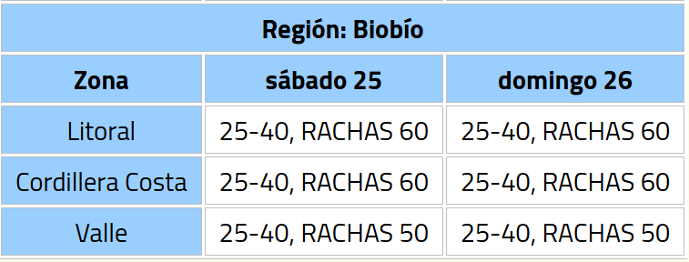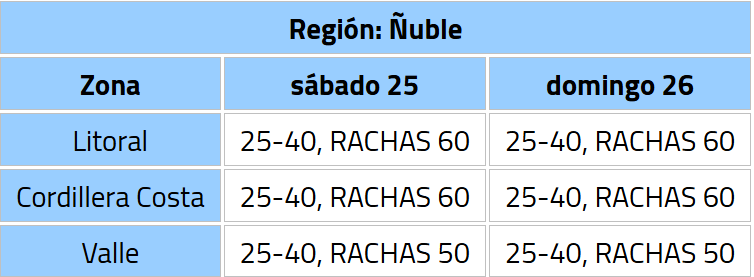 En la misma línea, advirtió que en algunos sectores cordilleranos las rachas llegarían a los 60 kilómetros por hora.