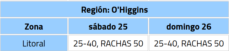De acuerdo a lo informado por el organismo, la alerta comenzará la tarde de este sábado y se extenderá hasta la tarde del día domingo 26 de abril en las regiones: