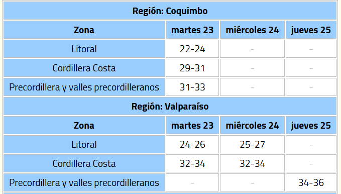 Si bien el fenómeno se mantendrá hasta el jueves, se espera que sea el día jueves el de mayor peak y se pronostica que en la región de Valparaíso los termómetros podrían llegar hasta los 36°.