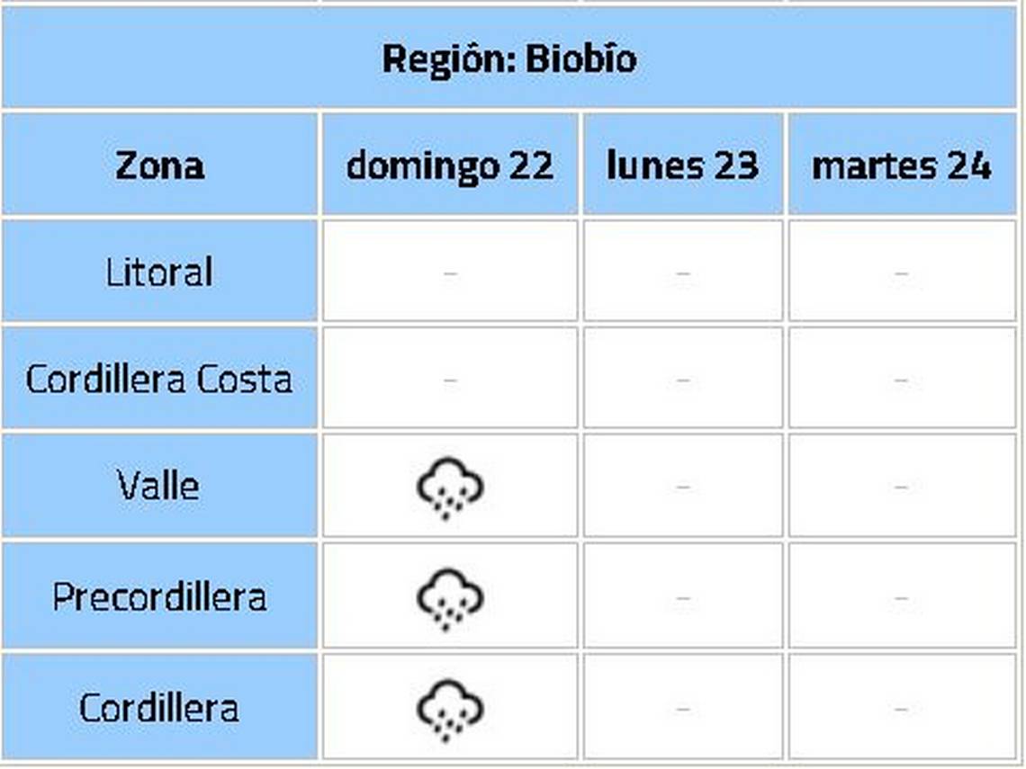 En concreto, caerán lluvias en zonas desde la región de O'Higgins a la región del Biobío entre la tarde de este domingo 22 y el martes 24.