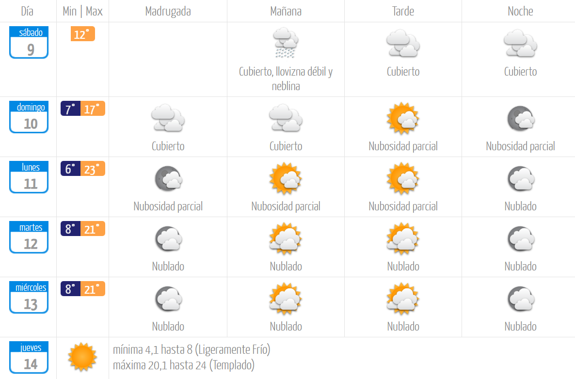 Sin embargo, las bajas temperaturas solo durarán durante el fin de semana. Mientras que el domingo la máxima es de 17 grados, el lunes abrirá la semana con temperaturas que alcanzarán los 23°.