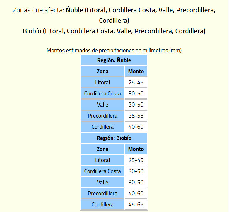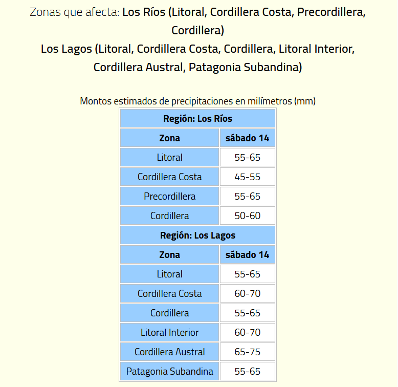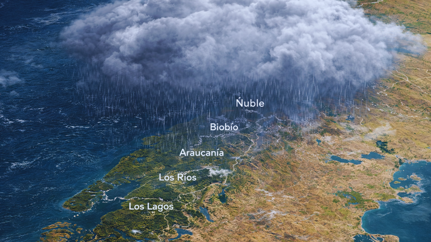 Específicamente, las regiones afectadas son la región del Ñuble, Biobío, Los Ríos y Los Lagos, en las cuáles lloverá por lo menos durante dos días.