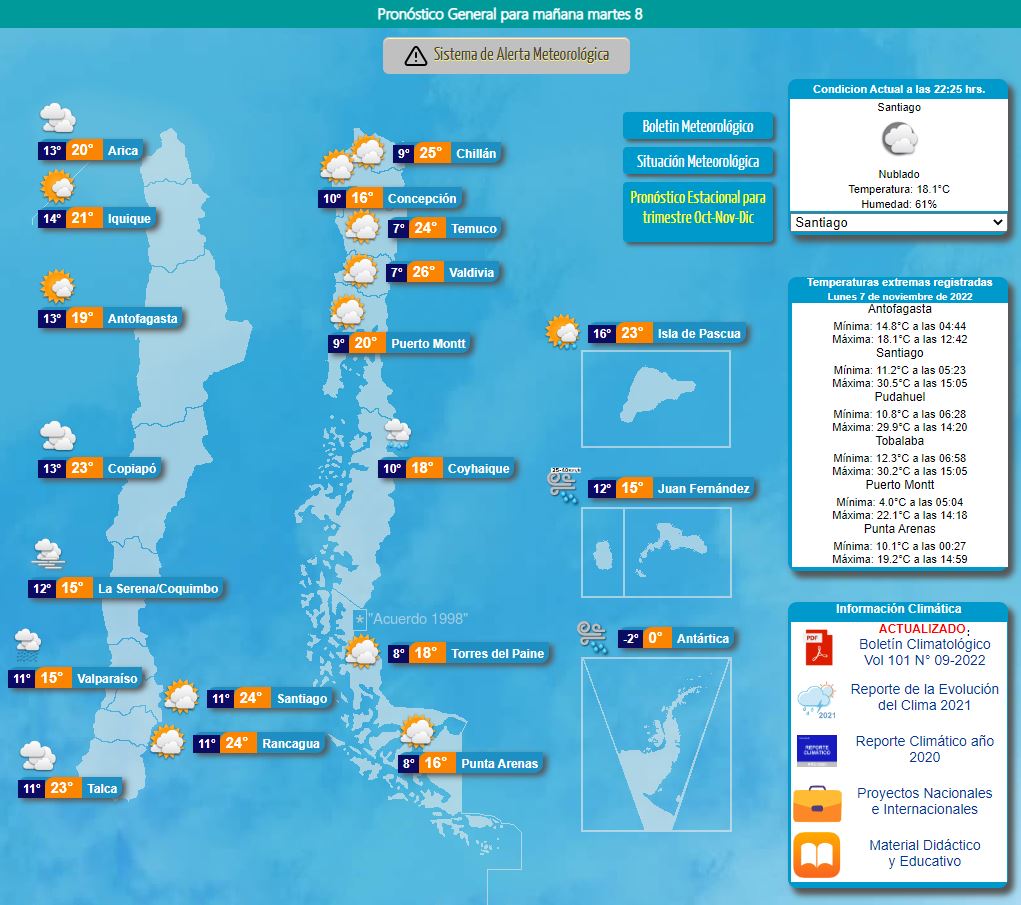 A continuación, te contamos cómo estarán las temperaturas durante este 8 de noviembre obtenidas a través del sitio oficial de la Dirección Meteorológica de Chile.