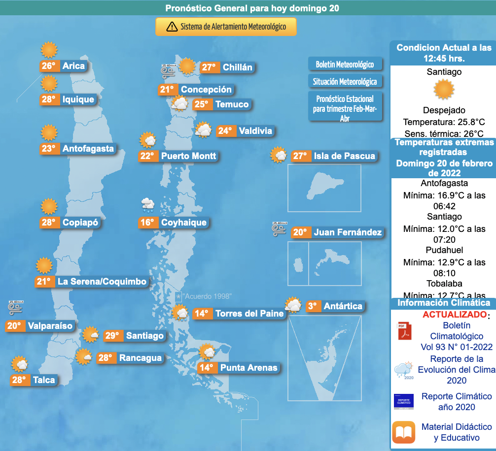 #Aviso A85/2022: [20/feb 12:42] Probables Tormentas Eléctricas en zonas de las regiones de Ñuble y Biobío https://t.co/kLIaDw6xqu pic.twitter.com/D91vx7Lp7v— MeteoChile (@meteochile_dmc) February 20, 2022