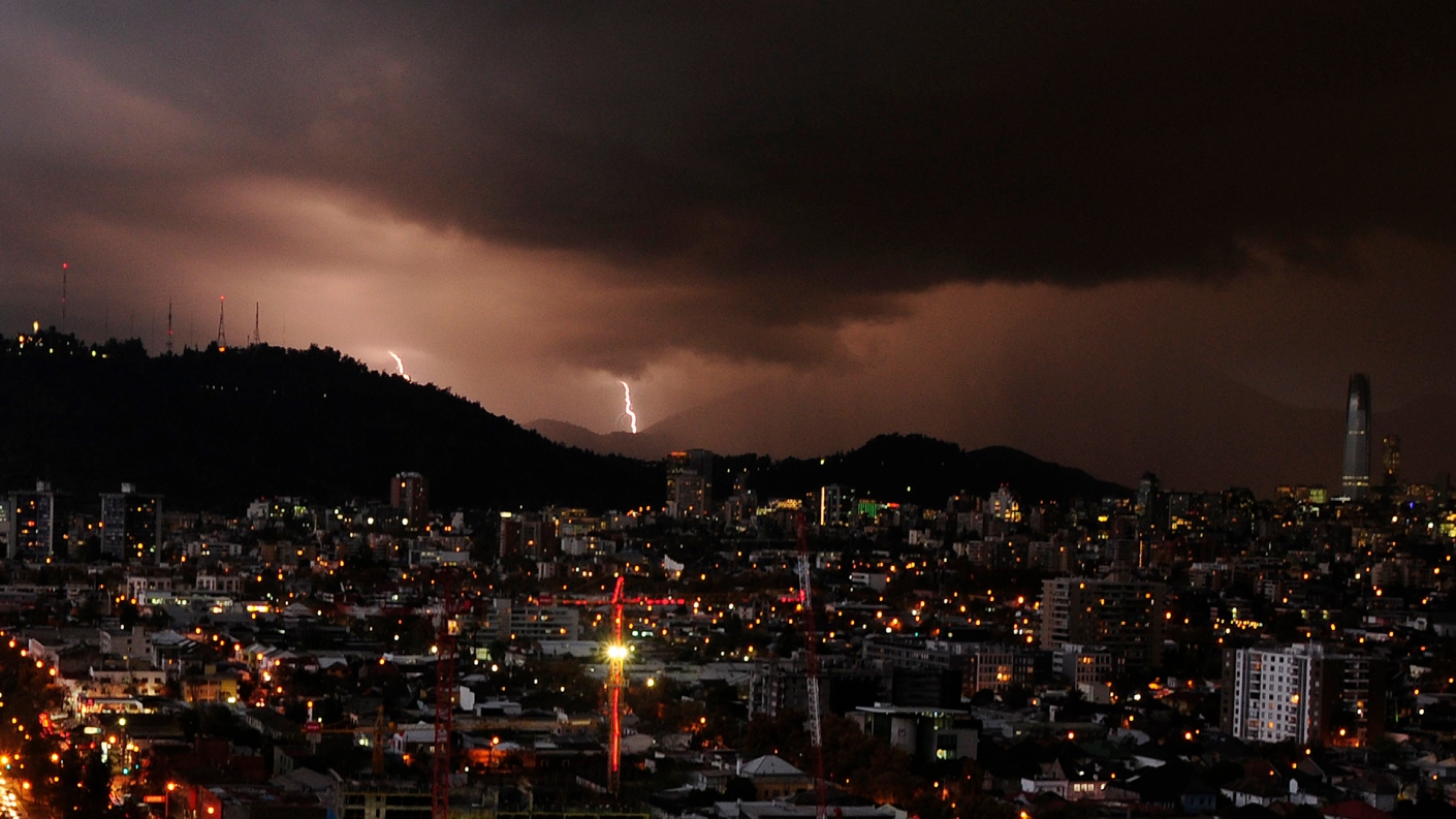No solo algo de lluvia puede caer en la capital, ya que la Dirección Meteorológica de Chile emitió avisos por probables tormentas eléctricas en tres regiones del país.