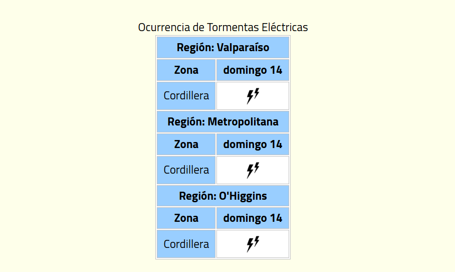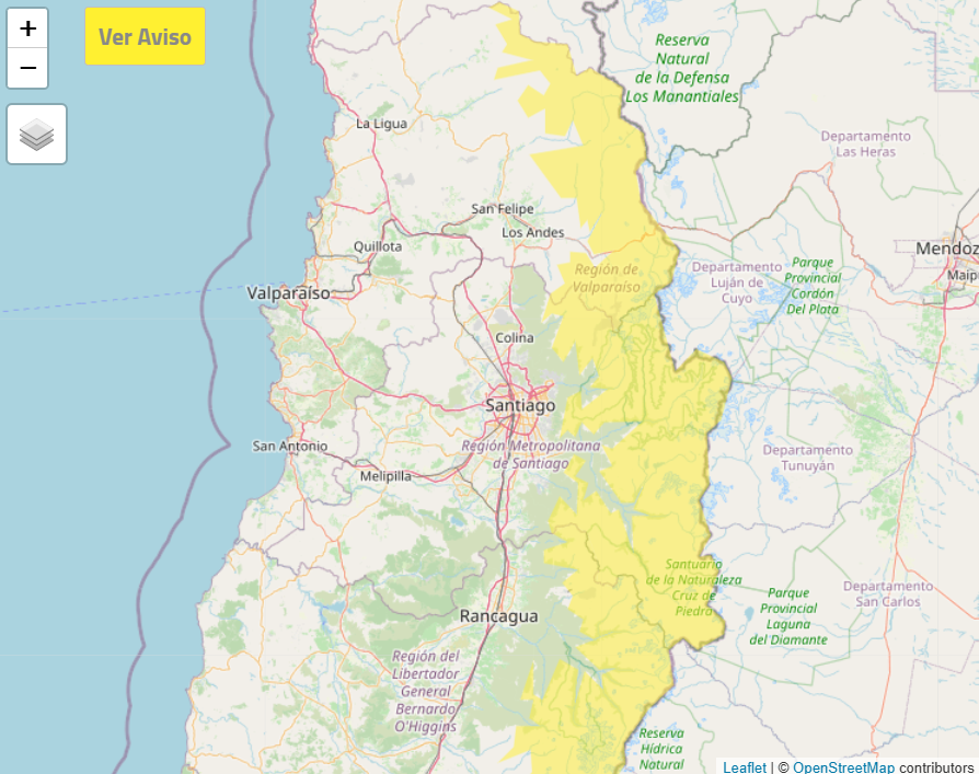 Se trata de las regiones de Valparaíso, Metropolitana y de O'Higgins. "Se pronostican fenómenos meteorológicos con un grado de severidad moderada, potencialmente riesgosos. Manténgase informado si realiza actividades expuestas a riesgos meteorológicos", se informó.