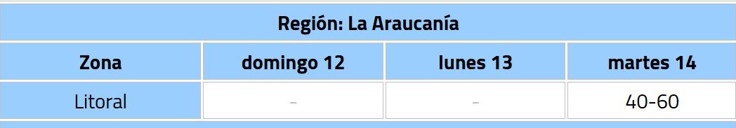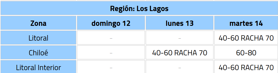 De acuerdo a lo informado por el organismo, la alerta comenzará la noche de este domingo y se extenderá hasta la mañana del día martes 14 de abril en las regiones: