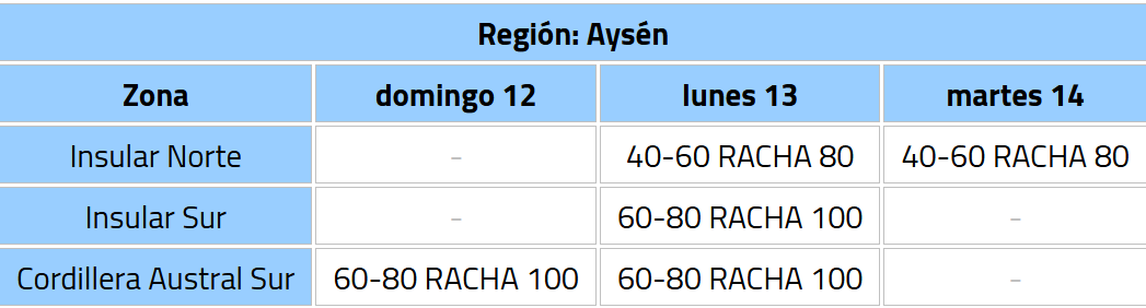 En la misma línea, advirtió que en algunos sectores cordilleranos las rachas llegarían a los 100 kilómetros por hora.