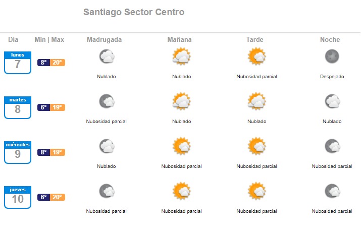 Gracias a la cobertura nubosa, las heladas se mantendrán al margen durante los próximos días y por las tardes, las máximas promediarán 19 grados en el centro de Santiago. ¿Lloverá en la capital? Lamentablemente la respuesta es no, al menos, durante esta segunda semana de junio.