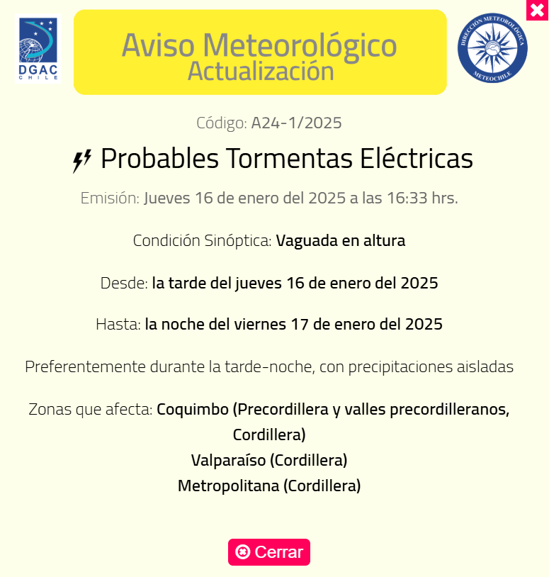 Así lo informó la Dirección Meteorológica de Chile, quienes emitieron un aviso para tres regiones de Chile: Coquimbo, Valparaíso y Metropolitana.