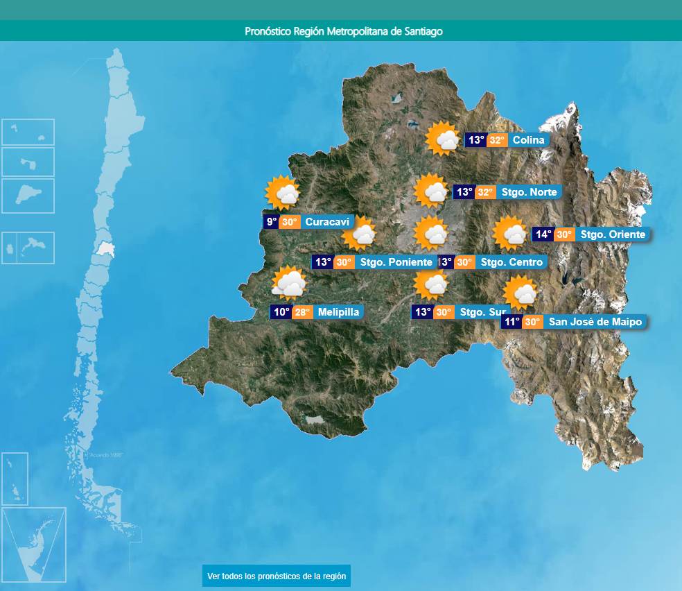 En calor también estará presente en regiones, como Rancagua, Talca o Chillán, donde la máxima promediará los 30°, bajando a los 24° en Temuco.
