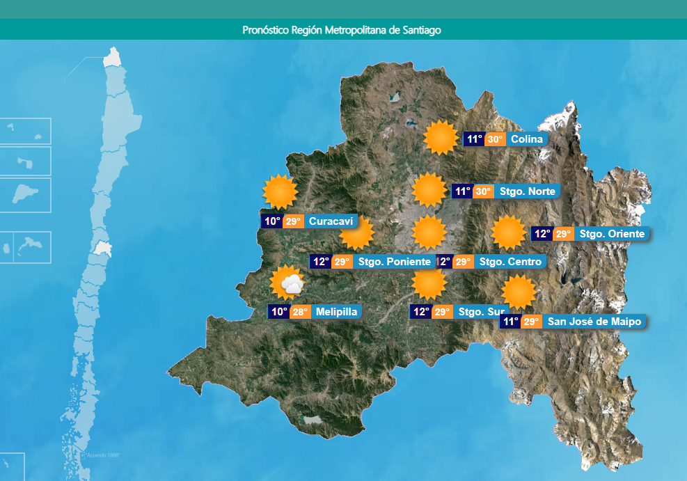 Lee también: ¡Con entrada liberada! Comienzan las inscripciones para seguir el evento ambiental más austral de ChileDe acuerdo a la Dirección Meteorológica de Chile, la temperatura máxima para este sábado 19 de noviembre en la RM será de 29°, con una mínima de 12°, subiendo a los 30° en sectores como Colina.