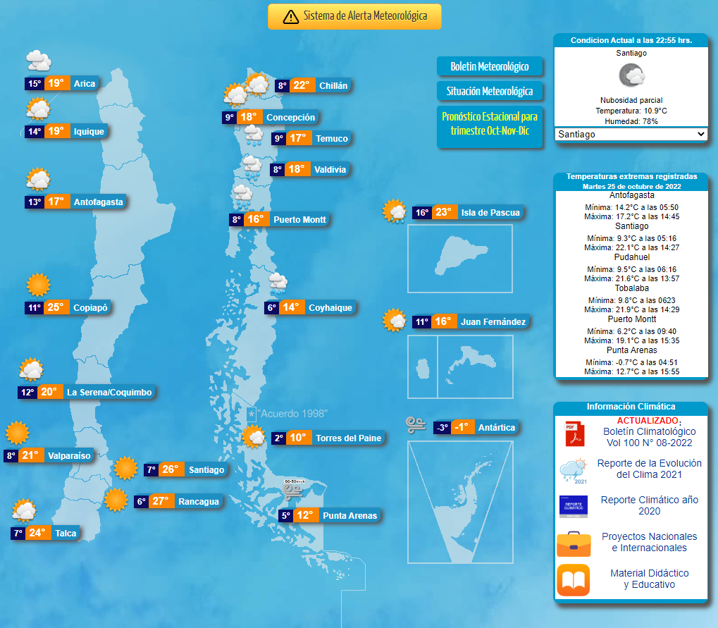 A continuación, te contamos cómo estarán las temperaturas durante este 26 de octubre obtenidas a través del sitio oficial de la Dirección Meteorológica de Chile.