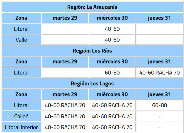 La Dirección Meteorológica de Chile (DMC) emitió alertas y avisos por este fenómeno que se desarrollará en distintas zonas de las partes afectadas. Antofagasta tiene los pronósticos de vientos más intensos.