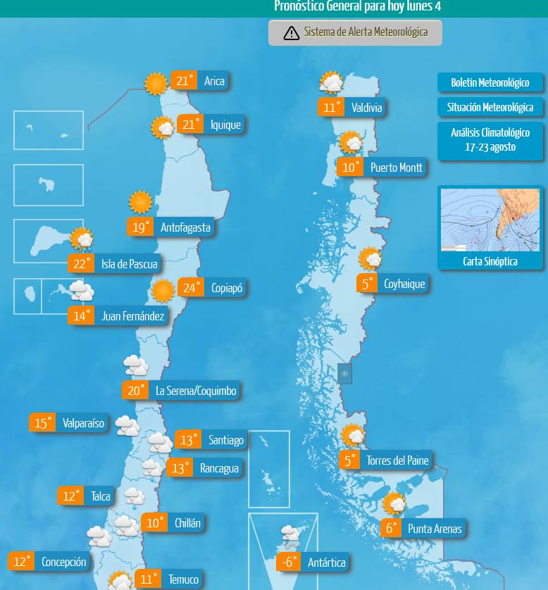 Las precipitaciones, al parecer, llegarían este lunes 4 de septiembre, jornada para la que se espera una máxima que irá entre los 13° a 14°.