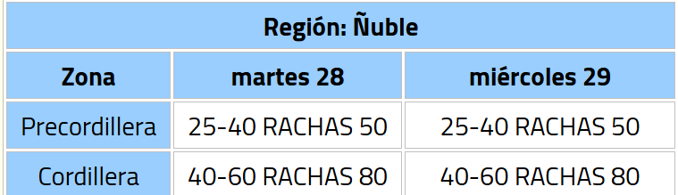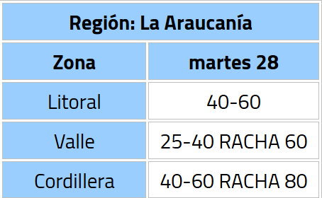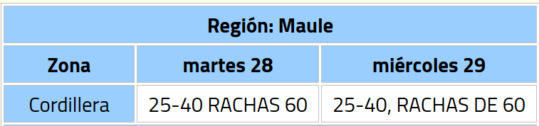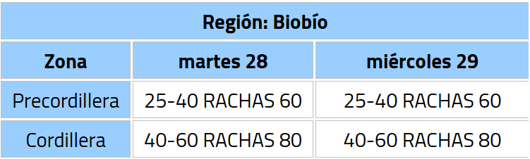 Mientras que durante la tarde del mismo día, se espera que los vientos comiencen a presenciarse en las regiones del Maule, Ñuble y Biobío.