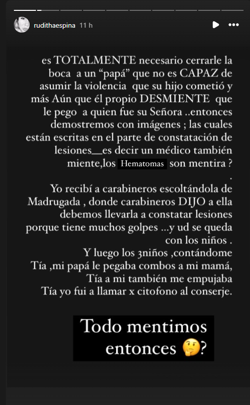 'tía, mi papá le pegaba combos a mi mamá. Tía, a mi también me empujaba. Tía, yo fui a llamar por citófono al conserje'. ¿Todos mentimos entonces?", agregó en su relato.