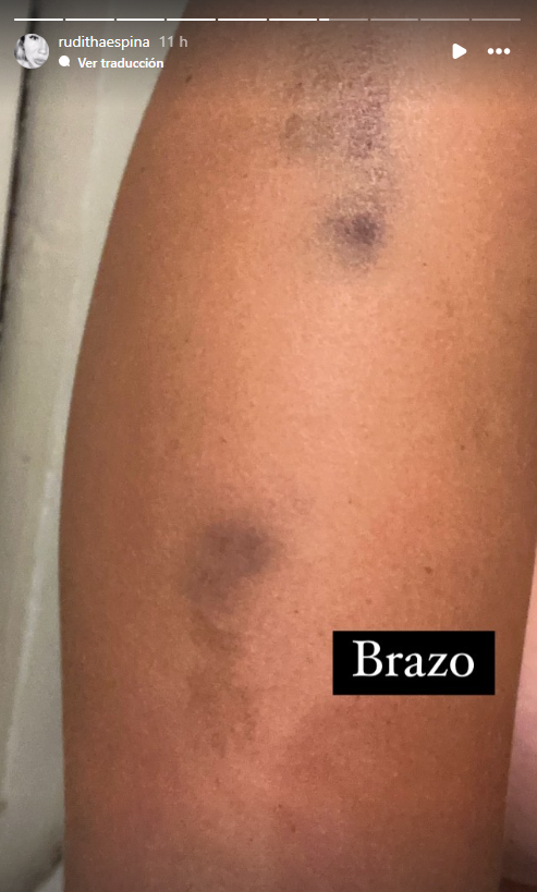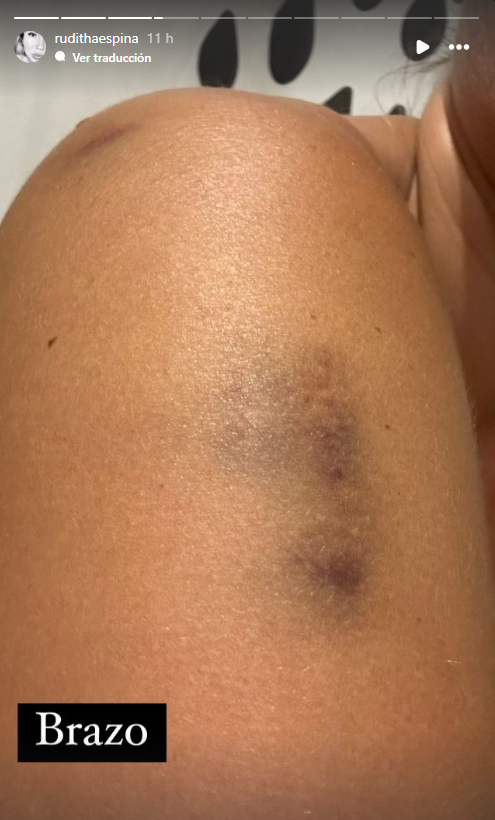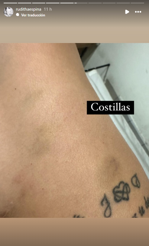 Rudith compartió diversas fotos que muestran hematomas en diferentes partes del cuerpo y que correspondería a Faloon Larraguibel.