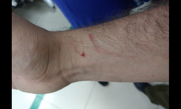 La señora fue identificada como P.L.S. de 73 años, quien debió ser trasladada al Samu más cercano ya que se descompensó. Fue diagnosticada sin lesiones, sin embargo, el funcionario policial resultó con lesiones leves (foto adjunta).