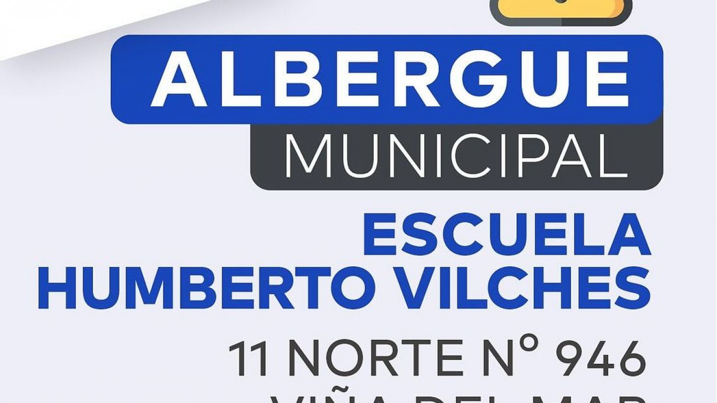 El segundo albergue municipal es Escuela Humberto Vilches y está ubicado en calle 11 Norte N° 946, Viña del Mar.