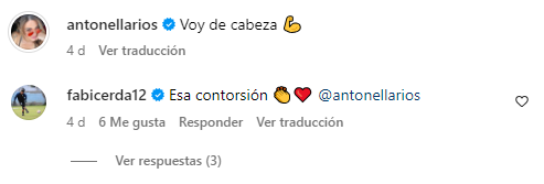 Por ejemplo, la actriz publicó hace cuatro días un video realizando una maniobra de yoga en medio de unas dunas. En dicho registro, Fabián le escribió lo siguiente: