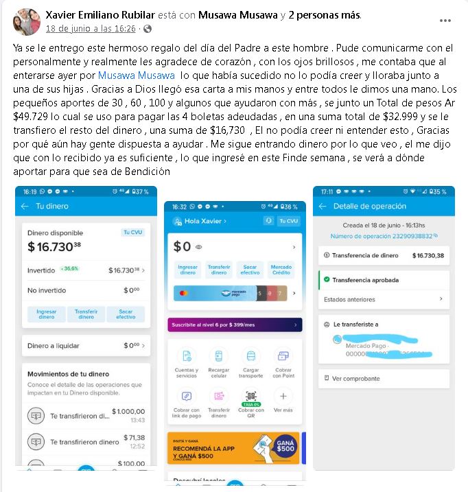 Luego de leer la nota, Rubilar decidió pedir ayuda a través de redes sociales, donde escribió: "Me gustaría darle una mano a este hombre, él no sabe nada, ni va a saber quién se la pagó, pero se va a encontrar con un lindo regalo para el Día del Padre. Ayúdenme por favor".