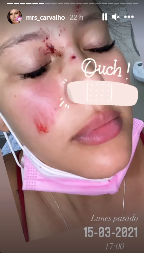 Aunque el hecho ocurrió el pasado lunes 15 de marzo, en stories se pudo ver cómo la joven aún tiene heridas en su rostro.