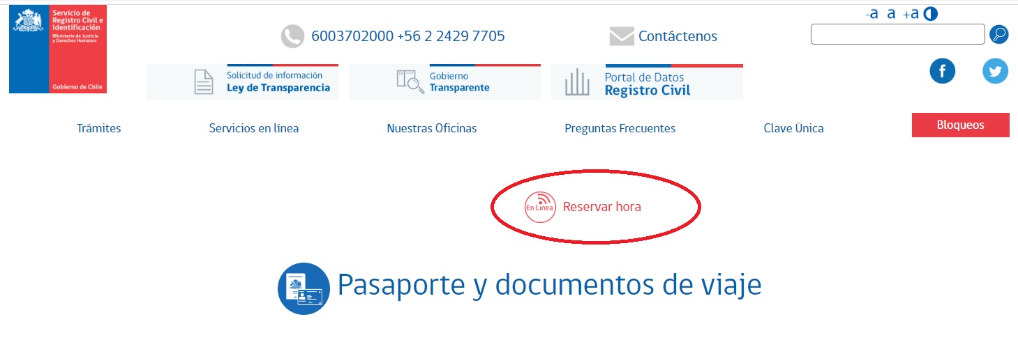 Cuando presiones ese botón, el sitio te dirigirá a otro lugar donde verás una frase que dice "Reservar hora", la que hemos marcado con un óvalo rojo.