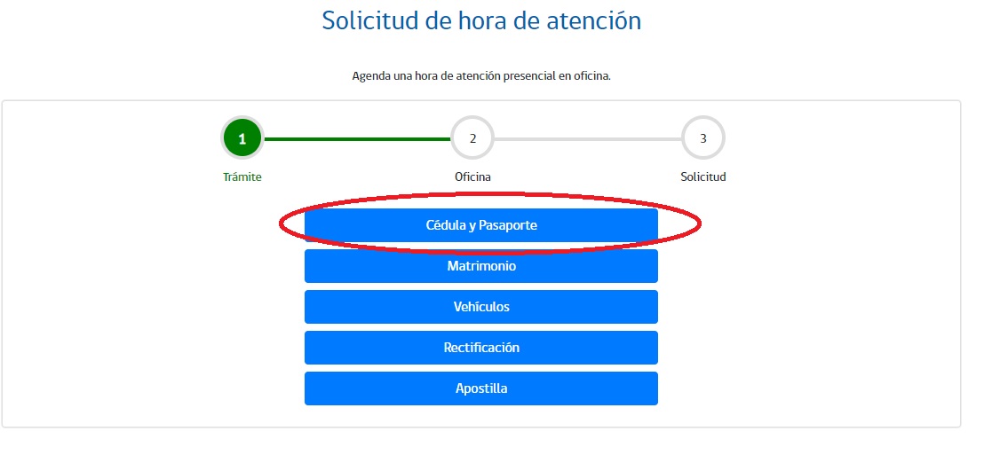A continuación, verás diferentes trámites, pero tienes que hacer click en el primero, que dice "Cédula y Pasaporte".