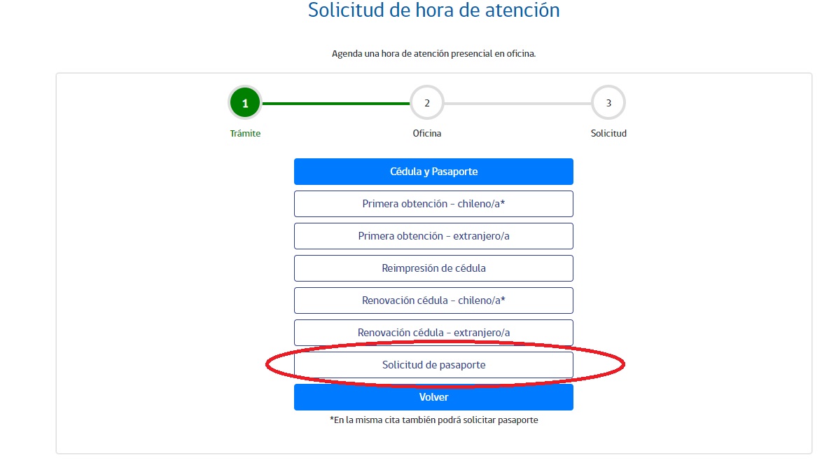 Luego, aparecerá como última opción el botón que dice "Solicitud de pasaporte", que es el que debes pinchar.