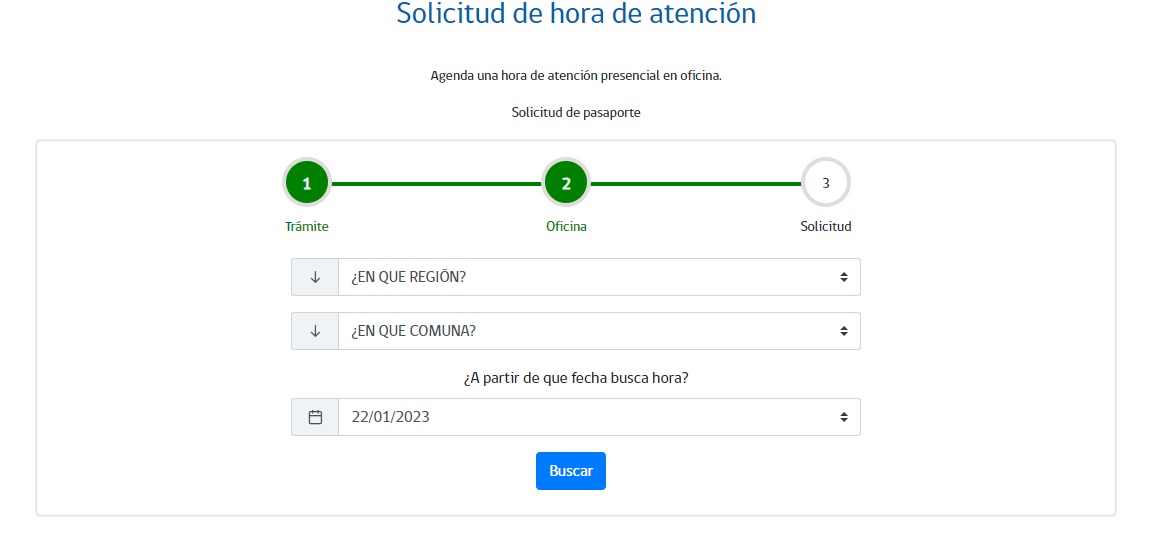 Por último, verás la región, comuna y fecha en que buscas agendar la hora, casillas que debes rellenar para poder agendar exitosamente tu cita.