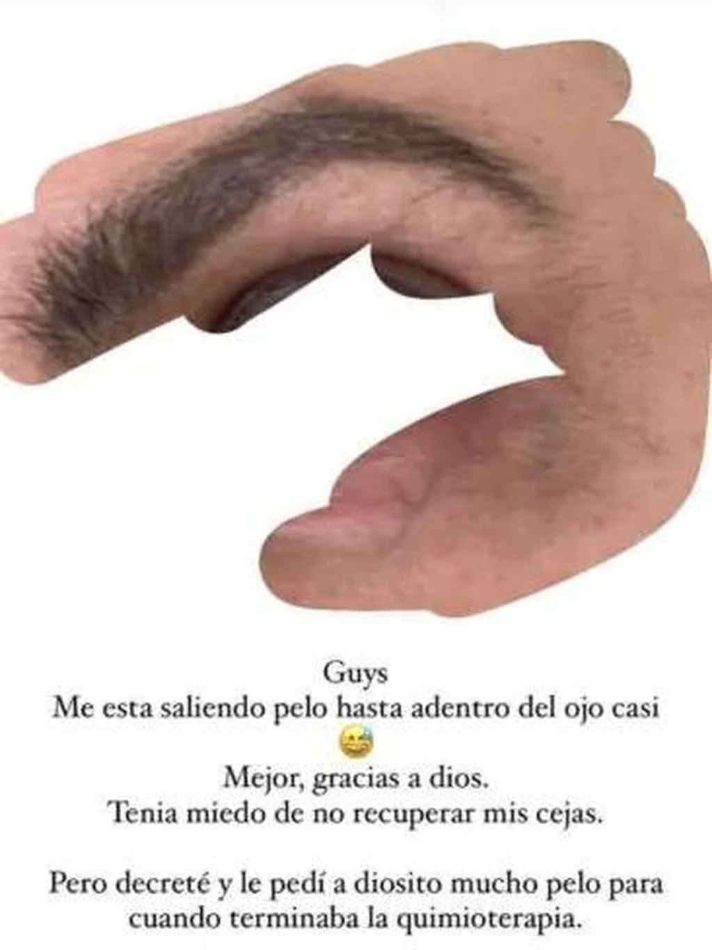 quimioterapia y no un hongo. Además, detalló que, para recuperarlas, comenzará un tratamiento con productos especiales que debe pedir en Europa.