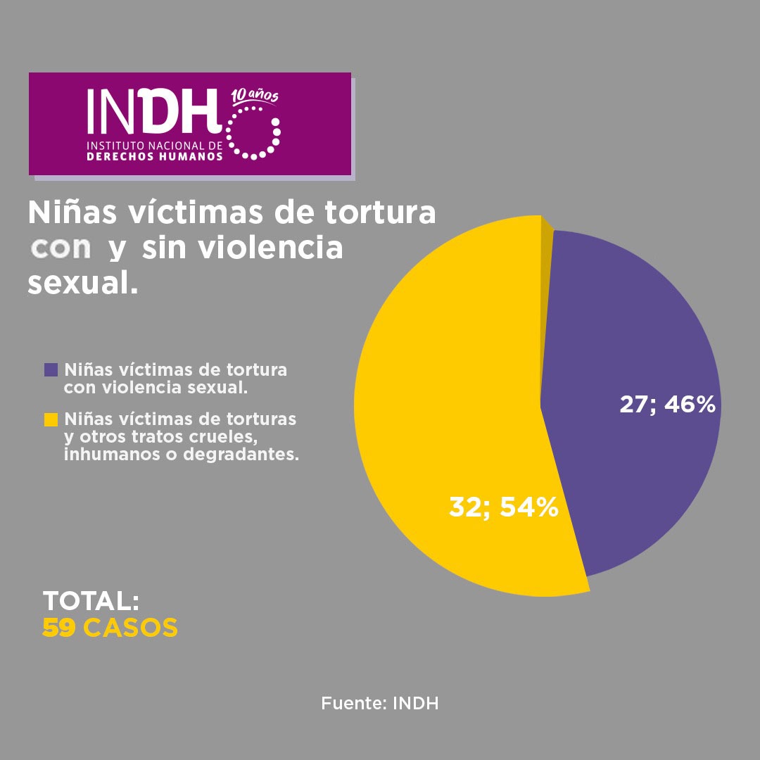 En el apartado de violencia contra niñas, el organismo especifica que 54% (32 casos) corresponde a víctimas de torturas y otros tratos crueles, inhumanos o degradantes.