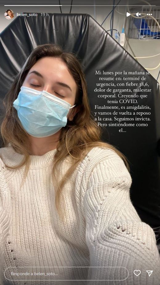 La imagen la acompañó con el siguiente mensaje: "Mi lunes en la mañana se resume en: terminé de urgencia, con fiebre 38,6, dolor de garganta, malestar corporal. Creyendo que tenía COVID".