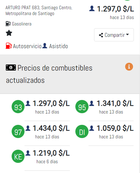 precios se actualizan constantemente. Además, cada estación de servicio es responsable de informar sus propios valores.