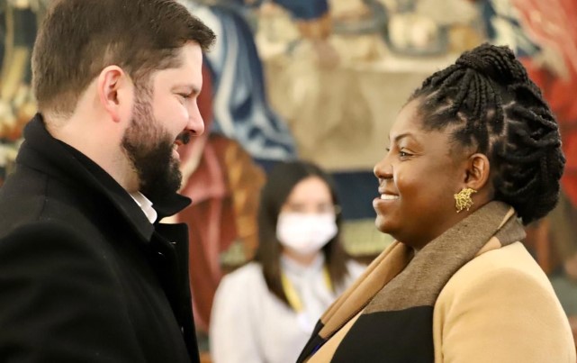 En el encuentro con el primer mandatario chileno participaron la canciller chilena, Antonia Urrejola, y la delegación que acompañaba a Francia Márquez, entre ellos el coordinador político, Carlos Rosero, y el senador Alexander López.
