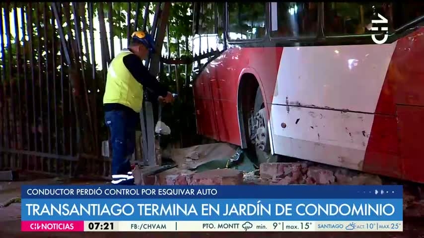 La noche de este miércoles, un bus del Transantiago terminó impactando a la reja e ingresando al jardín de un condominio ubicado en calle Candelaria Goyenechea, en Vitacura.