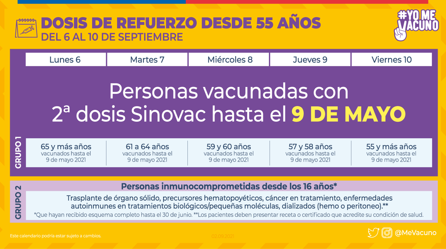 También se estará inoculando a los adultos de entre 61 y 64 años que hayan completado su proceso hasta el 9 de mayo de este año, además de las personas inmunocomprometidas desde los 16 años.