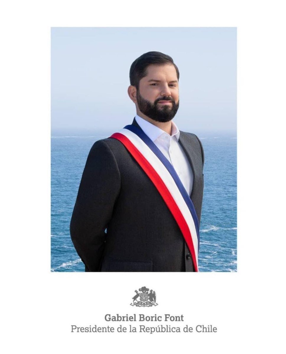 Luego de que Gabriel Boric asumiera oficialmente como Presidente de Chile este viernes 11 de marzo, se dio a conocer la foto que lo muestra como el nuevo jefe de Estado. Sin corbata, con un traje gris, la banda presidencial y peinado hacia el lado, la imagen muestra al magallánico posando con el mar de fondo. "Gabriel Boric Font, presidente de la República de Chile", dice en la postal oficial retratada por las fotógrafas chilenas Valentina Palavecino y Paloma Palomino.