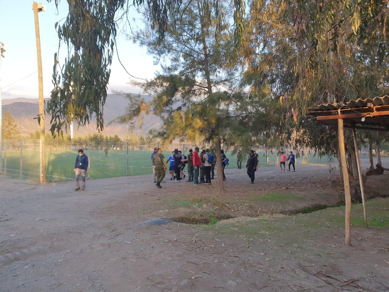 Un grupo de al menos diez personas, entre adultos y menores de edad, fueron descubiertos jugando un partido de fútbol en una cancha ubicada en el sector de Santa Filomena, en la comuna de Colina, durante la tarde del lunes.
