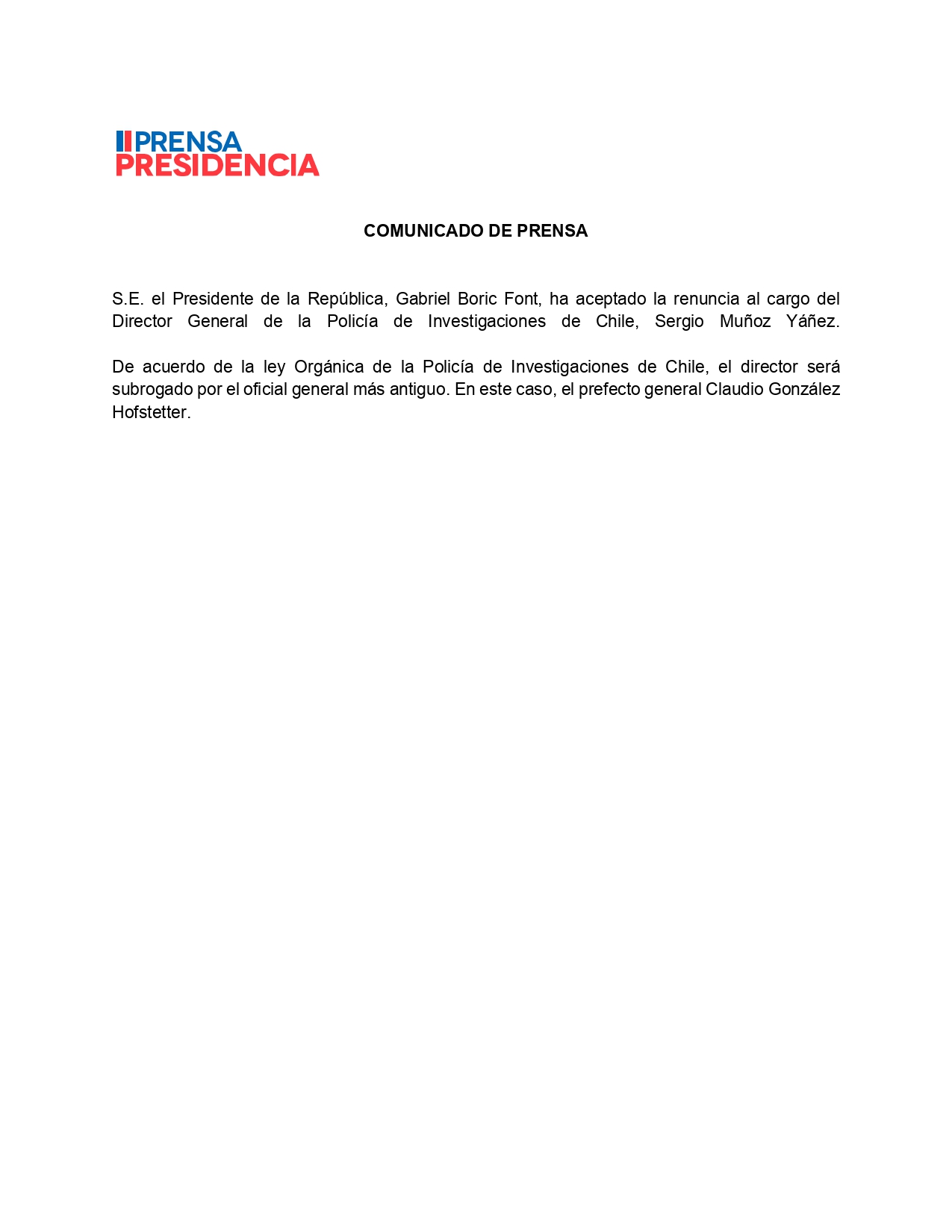 Caso Audios: Sergio Muñoz renuncia a su cargo como Director General de la PDI