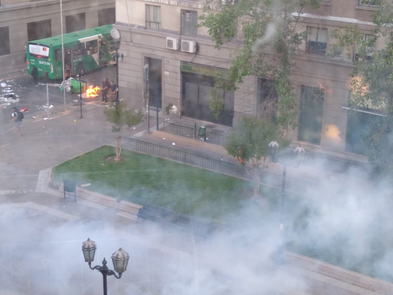 🔴LO ÚLTIMO Incidentes frente a La Moneda, calzada sur de Alameda está cortada @T13 pic.twitter.com/wfFFcjNln8— Karina Zúñiga (@karinazunigac) November 19, 2018